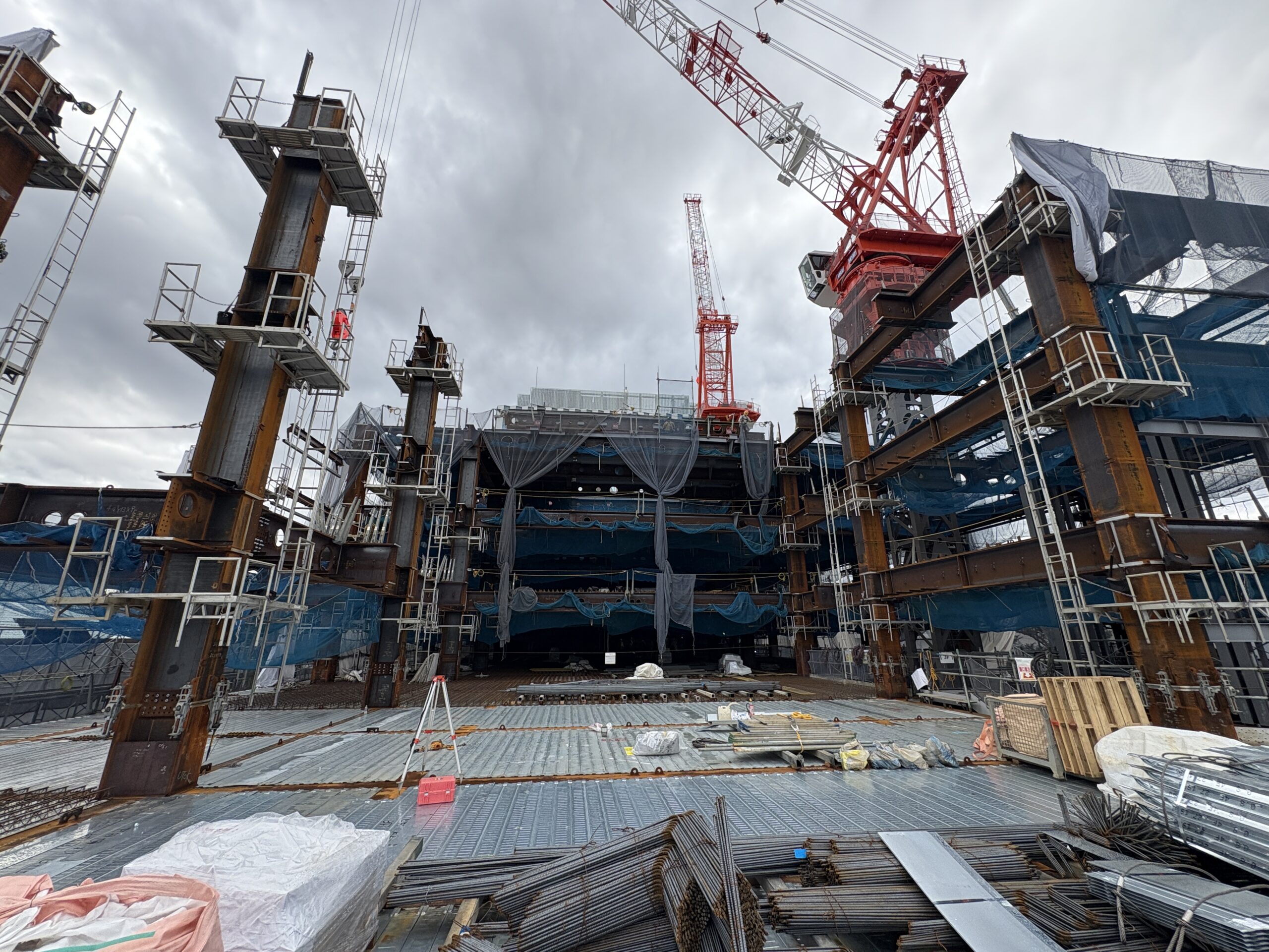 当社で施工している世田谷区役所二期工事の鉄骨も残り2工区となってきました。